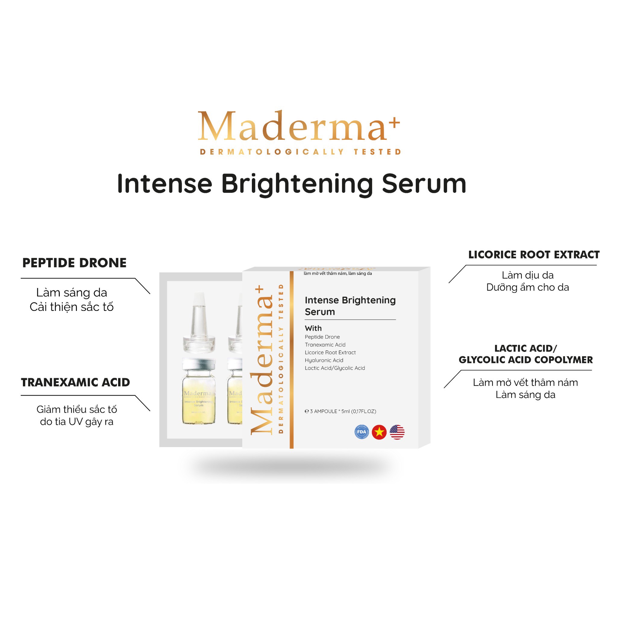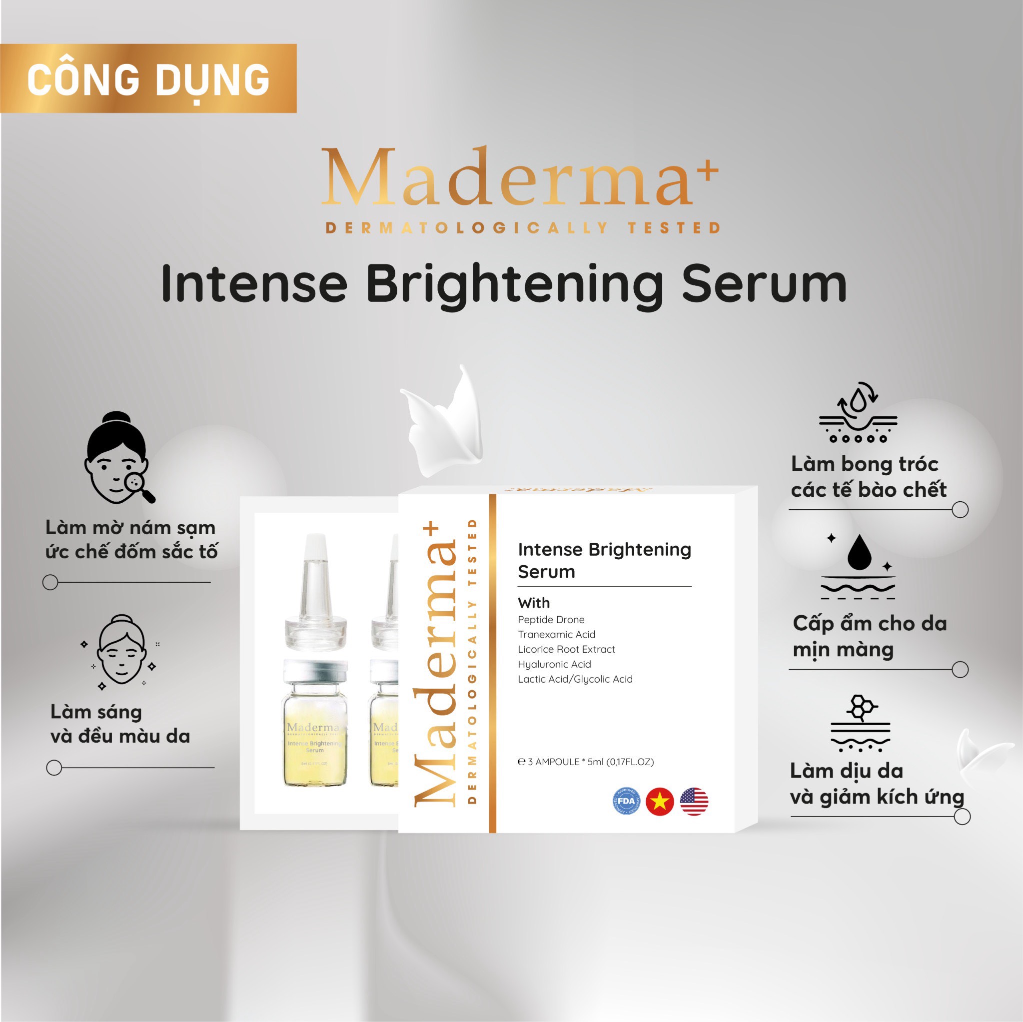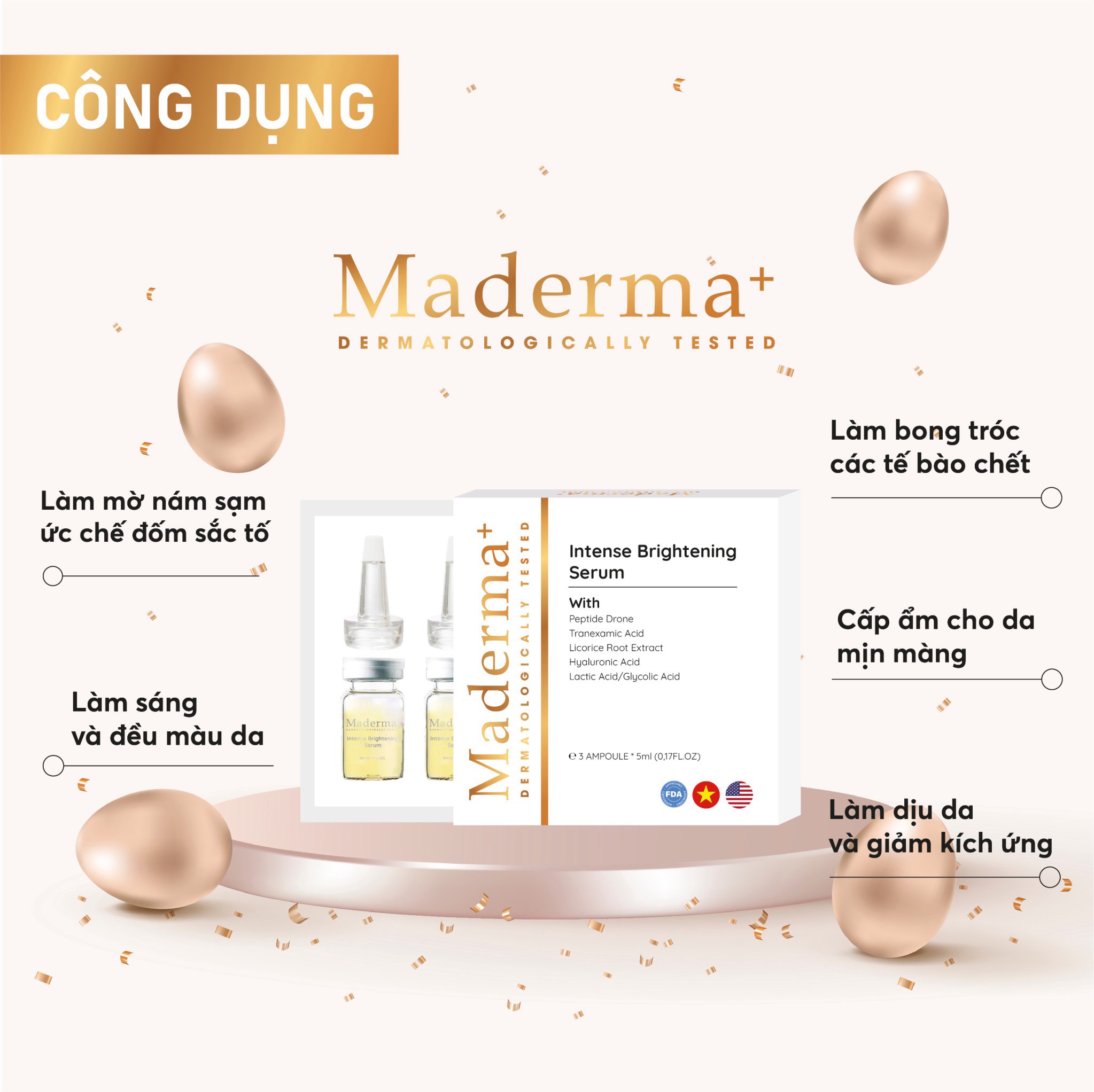 Giúp da trắng sáng đều màu,mờ thâm sau mụn,làm mờ thâm sau mụn và thâm nám…